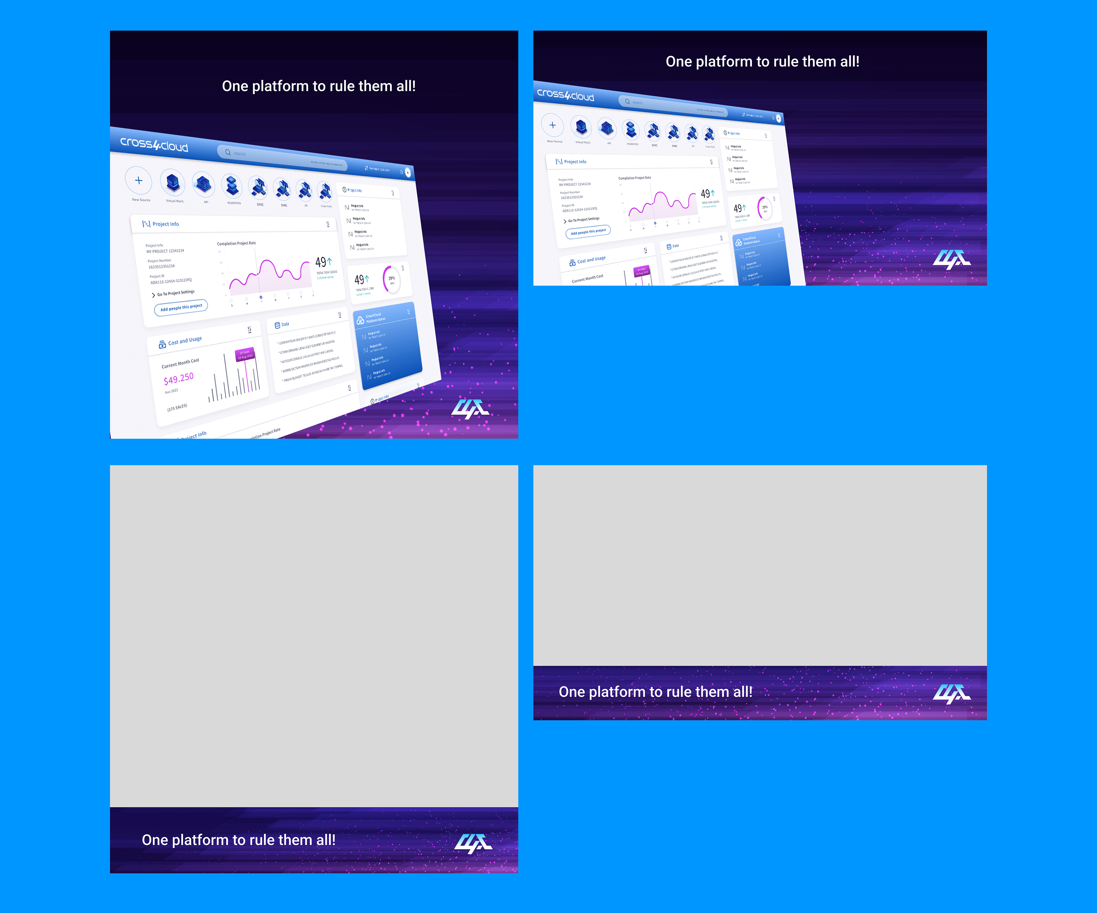 A comprehensive branding approach was executed, encompassing full branding and logo design, UX/UI for both web and mobile platforms, and tailored social media assets. From crafting a compelling visual identity to designing cohesive digital touchpoints, this work brings Cross4Cloud’s promise of clarity and control to life, supporting their positioning as the accessible, intelligent choice for multi-cloud orchestration.
